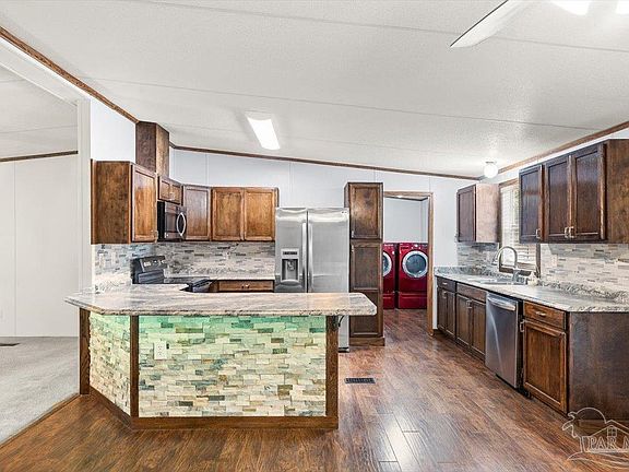 New Roof! New Water Heater! Well maintained three-bedroom, two-bathroom home on one half acre with new roof offers comfort and functionality throughout. Spacious living room features kitchen w/ breakfast bar and dining area that opens to large 12' x 24' sunroom for enjoying the natural surroundings. Updated kitchen has 2024 Range and newer stainless appliances including refrigerator along with many cabinets. The master suite includes a walk-in closet and a private bath with double vanity, separate shower and tub. Laundry room with newer washer and dryer and cabinets opens to yard. Enjoy outdoor living from front porch. Other features are large carport w/ electric, full sprinkler system with four zones supported by an irrigation pump. Take advantage of the 2 yard buildings with electricity in backyard along with small shed. Convenient to boat ramp on Santa Rosa Sound and minutes to Sugar Sand Beaches! Cypress Tree Park is just a short distance with playground and picnic area for family gatherings and events.