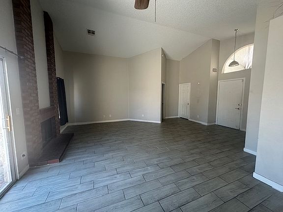 Superb 3 bed/2 bath one story home in Green Valley! 1,437 sq. ft. Two car attached garage. WOOD-LIKE TILE FLOORING THROUGHOUT HOME! Large front living room with a gas fireplace. Dining area. Kitchen has tile counter tops, a small pantry, and a breakfast nook. Master bedroom is separate with a walk-in closet. Master bath has double sinks. Has a backyard with a patio!