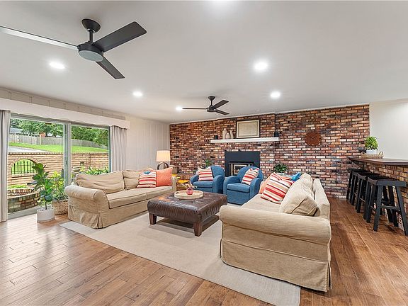While honoring its original 1967 character, the home features four large bedrooms, two and a half bathrooms, and a cozy living room with a welcoming fireplace. A flexible additional room offers options for a second living area or formal dining space—perfect for hosting family and friends.