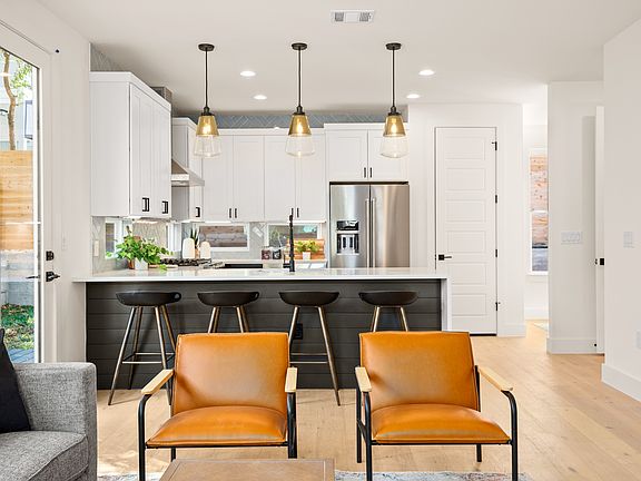 A gorgeous home in East Austin's Chestnut area, this beautifully designed home was completed in late 2021, it offers the perfect blend of modern aesthetics and comfort. As you step inside, you're greeted by the warmth of 7-inch white oak flooring, complemented by designer pendant lighting that adds a touch of elegance. The main floor has an open layout, seamlessly connecting the living spaces, kitchen, dining area and powder room. Just off the kitchen is a space flooded with natural light, ideal for a private dining area or home office. Ascending to the second floor, two large bedrooms await, one of which is a luxurious ensuite, providing the convenience of dual primary suites. Additionally, a shared full bath and a laundry room complete this level. The third floor is dedicated to the spacious primary suite that spans this complete floor, offering a serene retreat with floor-to-ceiling windows that bathe the space in natural light. Here, you'll find a large walk-in closet, built-in shelves, dual vanity, and a luxurious glass-enclosed walk-in shower. Outside, a large front yard and cedar fencing provide both privacy and charm. This property shares the lot with a second smaller home, each separately owned and with its own separate driveway entering on different streets, ensuring individuality and convenience for both residents. A terrific location in the vibrant Chestnut area, this home offers easy access to major highways and is just a stone's throw away from downtown Austin. In addition, enjoy the walkability to some great restaurants and coffee shops. There is a tenant lease currently in place that will transfer to the new owner. A prime location and, an exceptional home that truly embodies the essence of Austin living.
