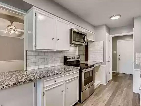 Spacious and updated four bedroom home with well-maintained landscaping and nice curb appeal in a beautiful subdivision with numerous parks and jogging trails along the greenbelt and creek. Covered entryway and foyer. Two living rooms with a massive family room that has a brick fireplace and vaulted ceiling with exposed beam. Formal dining, living room, and an eat-in kitchen upgraded with granite, Stainless Steel appliances, new flooring, and a subway tile backsplash. The master has a private bath and walk-in closet. Outside the covered patio overlooks the lush green lawn. A great space to relax and entertain guests. A refrigerator is included but no laundry machines. Connections are available for laundry. The home is occupied by the current tenant but available soon. I will show the property on Thursdays and Fridays but will need a completed application prior to showing. Pets are allowed as long as there is no history of violence. Each pet is an additional $50/month. To hold property I will need 1st months rent and deposit. Tenant responsible for all utilities and lawn care.