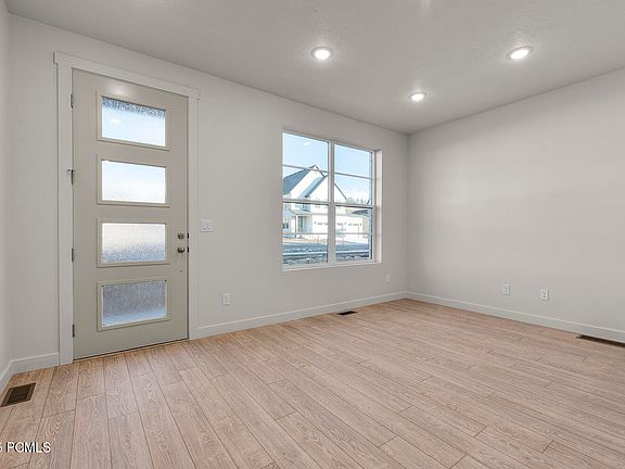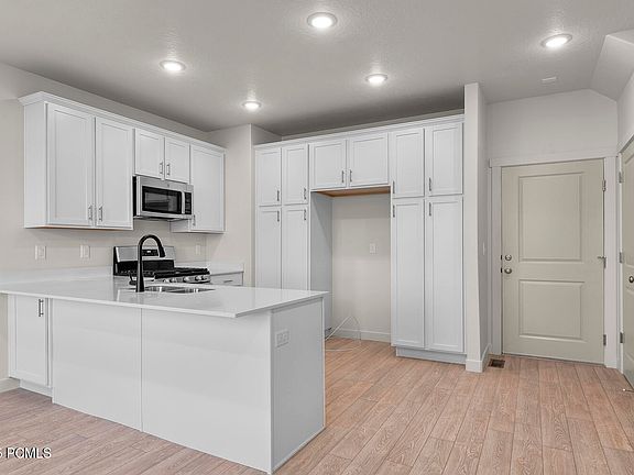 Come see this brand new Sundborn Townhome in a great Heber community that offers a stylish and functional living space! Featured you will find a stylish kitchen with white laminate cabinets, quartz countertops, and stainless steel gas appliances,. Designed for comfort and convenience, you will find laminate hardwood, vinyl tile, and carpet flooring throughout, along with a metal railing at the stairway that adds a contemporary touch. The owner's bathroom boasts cultured marble shower surrounds for