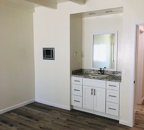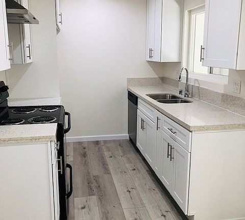Completely "modern" upgraded including kitchen and bathroom, private patio and deck with enclosed single car garage with opener. Only apartment in residential neighborhood. Hilltop views and 1 mi to hermosa beach.