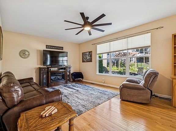 Beautiful 2 story home with 4 generous bedrooms on upper level. Primary suite features a walk in closet, full bath with garden tub, separate shower and dual sinks. Main level has 9' ceilings. The eat-in kitchen with 42" cabinets, granite counter tops, island and stainless steel appliances flows into a spacious family room. Home features a rare first floor full bath and den/office which can be used as a 5th bedroom. The Partially finished basement includes a tiled billiards game area, carpeted Rec- room, large office and workshop/storage area. The home is professionally landscaped throughout the yard featuring pergolas and a built-in fire-pit. There is also, a spacious 3 car garage. PLEASE NOTE The Property Taxes do reflect a Home Owners Exemption