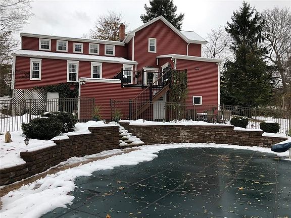 Absolutely charming historical farmhouse! OVER $170K IN UPGRADES!!! Completely renovated including tear off roof, vinyl siding, new electrical, deck, new kitchen, driveway & much more! (Full list of improvements available) This unique home is loaded with character!. Enjoy the open floor plan, updated kitchen with granite counters, newer appliances & knotty hickory cabinets! Step outside to a beautifully landscaped oasis, inground heated pool and 24x60 macadam basketball court! The pool house has to be seen to be believed! Teenagers or guests will love this 90 ft long building fully finished with living area, fridge, dry kitchen, & abundance of cabinets! Large screen set up allows you to watch movies in comfort. An absolute must see! Incredible value for the price. Move right in & enjoy!