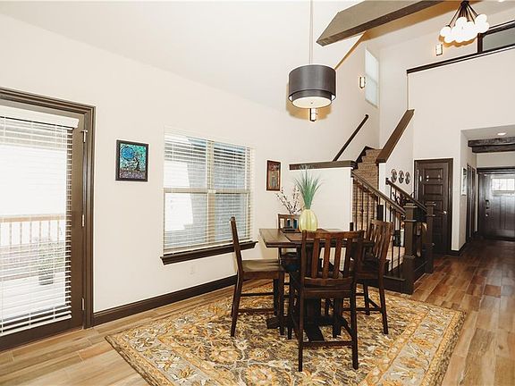 Style! Like new, spacious, attractive two story with lots of natural light. Master suite on main level w/large walk in closet. Powder room on main floor, laundry room with granite topped folding station also on main level. Open concept with breakfast bar & dining area. Top of the line appliances. Upgraded lighting & ceiling fans throughout. Electric fireplace in living area, Granite, soft close cabinet doors, under counter lighting, vaulted ceiling with exposed decorative beams, walk in tiled shower w/stone floor and glass tile accents. Tranquil wood deck for morning coffee or weekend BBQ. Beautifully trimmed out home. Two bedrooms and bath upstairs. Dual controlled HVAC. Attached two car garage. Low maintenance exterior AND POA fee covers lawn care, clubhouse w/pool and entrance to Stone Meadow. Simpli Safe security system does not convey. Great location in desirable Stone Meadow close to WalMart HQ and all local amenities.