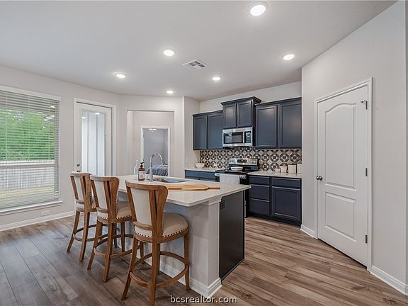 $78,000 price reduction. Are you looking for a move-in ready home, a huge lot with a huge dedicated green belt with trees behind the house, and that unheard-of 3-car garage? This estate section of Pleasant Hill features the largest lots in town. The backyard even faces east which is a big plus in the hot Texas summers. This home is built for multiple generations to all live tougher with a great suite on the first floor, the primary on the first floor, and two enormous bedrooms upstairs perfect for multiple beds! The primary bedroom features a separate tub and walk-in shower, dual vanities, and a HUGE walk-in closet! The living area is wide open with room for a large table, and tons of seating in the family room opens to the kitchen with bar seating! Stainless Steel appliances compliment the kitchen’s quartz countertops. With Costco opening in BCS soon, you will love the walk-in pantry and massive under stair storage!! The yard is huge and has tons of side yard as well so you don’t feel like you are cramped on top of your neighbors! Add on the builder's superior level of construction with 50 years of family-owned and run business! You’ll love all the stuff you don’t see like the moisture barrier and 3/4” plywood on all exterior walls, the very high seer HVAC system from Carrier, the Moen faucets, the GE appliances, Shaw flooring, and so much more.