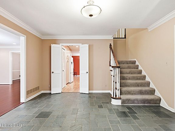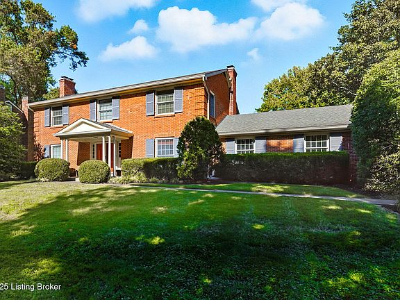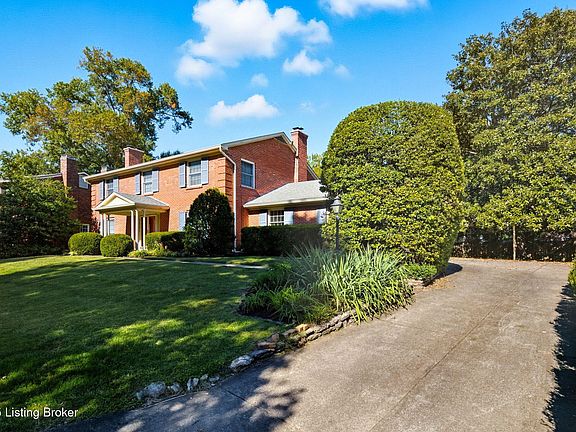 This lovely move-in ready, all-brick home is located on a private cul-de-sac in the desirable Hayfield Subdivision in the Highlands and is conveniently located to schools, shopping and easy access to the Watterson, I-64 and I-65. The updated kitchen boasts a bay window with seating, granite countertops and center island, custom solid wood cabinets, a gas stove and an Advantium oven. The dining room and living room have crown molding and hardwood flooring, with a large walk-around bay window in the dining room and a marble fireplace in the living room. The family room features crown molding, beamed ceiling, tile flooring, custom wood cabinetry, a fireplace and French doors that lead to the large outdoor patio and a fully fenced expansive private backyard. The first-floor office/library (or bedroom) has built-in bookcase on one wall and a pocket door leading to a half bath. On the second floor, the primary bedroom has a walk-in closet, 2 additional closets in the bedroom and an ensuite bathroom. Two of the three additional bedrooms upstairs have built-in bookcases, and all share another full bathroom. All bathrooms feature updated granite countertops, tile floors and custom solid-wood cabinetry. The finished basement has luxury vinyl flooring and features a large space for a playroom with built-in toy chests and a bookcase, bar and fireplace and an additional storage closet under the stairs. The adjacent unfinished portion of the basement has a laundry area and allows for ample storage. In addition to the 2 1/2 car side-load garage, this home provides ample visitor parking in the driveway and around the cul-de-sac. This lovely house is a must-see home close to schools, shopping, and so much more!