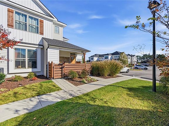 The 2-bedroom, 2-bathroom "Everett" plan features a roomy layout with upgraded engineered hardwood floors throughout, fresh paint, and new light fixtures. The bathrooms and kitchen have updated fixtures, and there's an expansion tank on the water heater. The unit feels like new and includes a living room, den, dining area, and kitchen. Updated light fixtures. Updated hardware on all floors giving a modern look. New faucets in kitchen and bathrooms. Extra bonus room/area. Outside, there’s a private patio with an attached storage closet.