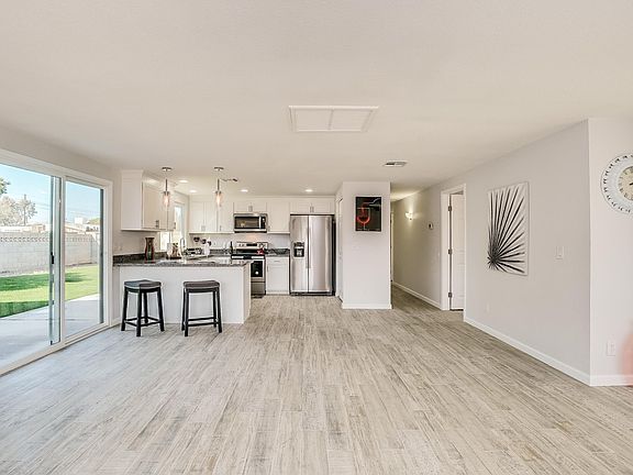 Grass in backEat-in kitchenAttached garageFully fenced yardUpdated bathroomsDesert front landscapingOpen modern floor plan