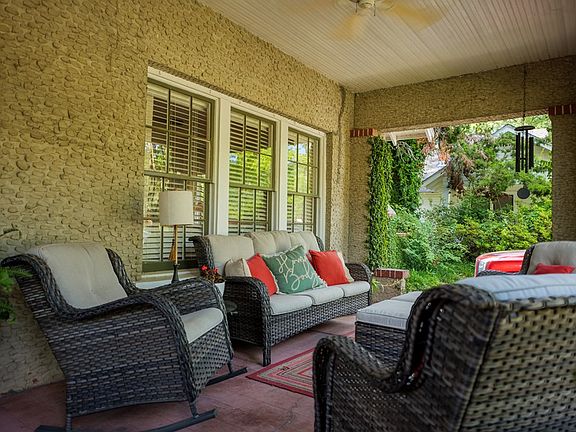 Vintage charm abounds in this almost 100 year old house. A Unique Craftsman style exterior with both covered and open porches along the front of the home, this home begs for entertaining. The foyer opens to a cozy reading nook and then to the large living room with fireplace. Hardwood floors are throughout with the exception of the baths. Nine foot ceilings are also throughout. The primary bedroom and bath are on the main level. This space also has a fireplace and a private bath with walk in closet. Two guests bedrooms are on the main level. One could easily be a great home office. The kitchen was updated 18 years ago, taking out walls and making the space more functional for today's families. Cherry cabinets and a light colored granite were chosen, lending itself to more of a timeless decor. Character was maintained with the cozy breakfast room and original built in China cabinet and cupboard. Up the craftsman style staircase are two additional guest rooms, both with walk in closets. These rooms share a bath with a shower, tub and separate vanities. A bonus is the approximately 33' x 43' square foot walk in attic. Outside, the yard is fenced and there is a storage building with covered patio for enjoying a little more outdoor privacy.