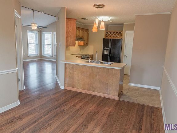 A corner lot rarely comes available in the Country Ridge Subdivision. Check out this renovated 2 bedroom 2 bath low maintenance home ready for a new family to make it their own. Exterior is made up of brick veneer and gray vinyl siding. Drive up and appreciate the inviting front porch in this quiet neighborhood. Enter the front door to see the laminate wood flooring in the living area, ceramic in the kitchen and baths, and carpet in both bedrooms. Living room with vaulted ceilings has a corner fireplace with wood mantel & brick hearth. Appreciate the neutral painted walls and white trim. The kitchen is nicely appointed with ample cabinet space, pantry, Formica countertops, upgraded Kitchenaid electric range, dishwasher & newer faucet fixture. Master bedroom has a nice trayed ceiling with fan and private en-suite bath that has been custom tile finished, and walk in closet. On the other side of the home is second bedroom with walk in closet large hall bathroom. Other amenities: newer Window World high efficiency double pane windows, additional 8 inches of blown-in attic insulation, over-sized enclosed two car garage, fully fenced yard, washer, dryer & refrigerator can remain. This home did not flood in Aug 2016. Located in Flood Zone X. Community mailbox is located in close proximity to the home. Conveniently located off Millerville with access to I-12 or Lowe's, Target, lots of shopping, restaurants and so much more. Make an appointment for your private showing today.