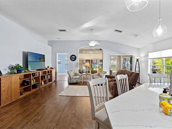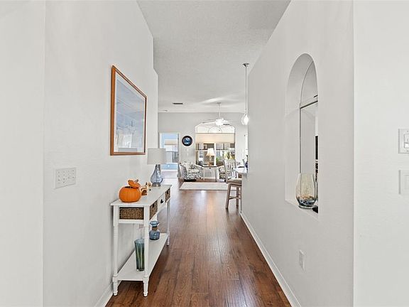 Welcome to an exceptional residence in the renowned 55+ active community of Heritage Pines! With a BRAND-NEW ROOF in 2025 this 3-bedroom, 2-bathroom, 2-car garage home showcases the sought-after 'The St. Andrews' floor plan, known for its abundance of natural light and open concept living! The home boasts luxury vinyl tile and laminate flooring in warm tones, a STUNNING NEWLY REMODLED (2024) KITCHEN with quartz counter tops, generous sized island and breakfast bar, two-toned cabinets, stainless steel appliances, single under mount sink and pantry! The primary bedroom is spacious and inviting, with dual walk-in closets that feature custom closet organization! The ensuite bathroom, NEWLY REMODLED (2025), includes double sink vanity with quartz counter tops and a luxurious walk-in shower. All bedrooms feature enhanced privacy and comfort with blackout duets! The inside laundry room is across the hall from the NEWLY REMEMODLED (2025) guest bathroom, featuring a linen closet, quartz counter tops and walk-in shower. The open concept living area, presents high ceilings highlighted by recessed lighting and dimmable lights over the kitchen island, which creates a versatile space for any occasion. Step out to the lanai, a serene space for indoor-outdoor living equipped with new removable vinyl windows, Coolaroo Australian shades and brand-new exterior door. Enjoy this maintained village with community-provided services such as mowing, weeding (every second week of the month), and painting every seven years, spectrum cable/internet ALL included in the HOA fees!! Residents have access to a comprehensive array of amenities and classes, including a Golf Course, restaurant, fitness center, clubhouse, full-size pool, tennis courts, pickleball, bocce, and a library. The community also features putting and chipping greens, a driving range with complimentary balls through a gold membership, and a memorial garden for veterans. Additional updates include: 2021 AC UNIT, 2022 Hot Water Heater, BRAND NEW 2025 LG washer and dryer, BRAND NEW water softener installed 2025, garage door opener installed 2024 AND epoxy garage floor! Heritage Pines is just 45 minutes north of Tampa International Airport and close to shopping and dining! This home is impeccably maintained and ready for its next owner!!