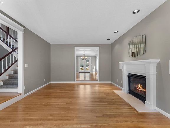 Spacious home on a private, level 12,000 SF lot with three mountain views. The remodeled kitchen features alder cabinets, slab granite counters, a baking island, stainless appliances including a gas downdraft range, prep sink in the island, wine fridge with built-ins, walk-in pantry, and a pocket office/butler kitchen. Hardwood floors extend through most of the main level. The formal living room includes surround sound and a gas fireplace, while the family room offers a stone façade gas fireplace and custom built-ins. Upstairs are four bedrooms and laundry. The vaulted primary suite includes a large bath with dual walk-in closets, Jacuzzi walk-in shower, dual sinks, and a soaking tub. Outdoor spaces include a large stamped patio with gas hookup off the informal dining area and a deck for outdoor dining off the formal dining room. Mature landscaping and organic blueberries complete the setting. This home has been maintained exceptionally well. Updates include: LP siding replaced with cedar (2000), 50-year shake roof (replaced 2007) recently treated/inspected), added gas BBQ piping (2014), 96% Trane gas furnace with Clean Effects air cleaner (2014) which is regularly serviced, Trane AC (2014), KitchenAid fridge (2017), Dacor gas range (2017), carpet replaced (2018), Rheem hot water heater (2020), Jacuzzi bath in primary (2023), exterior paint (2024), and replaced French doors off formal dining (2024), plus much more. Close to Cooper Mountain Nature Park, Trails and Vineyard with an easy commute to Nike, Intel, Murray Hill, and Progress Ridge restaurants and shopping.