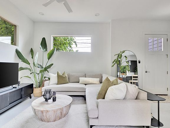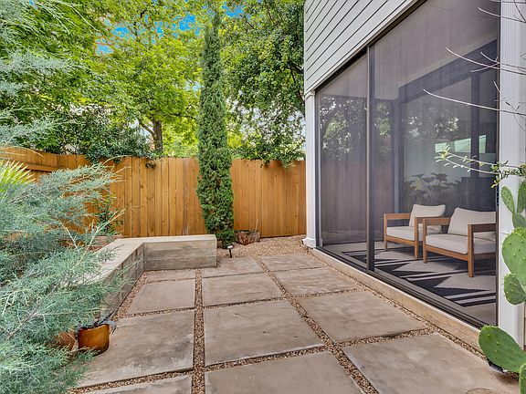 Enter via private alley access. There is an attached one-car garage (rare in East Austin) as well as a private driveway in front of the house that can fit one more car. The new washer and dryer are located in the garage, along with extra storage.