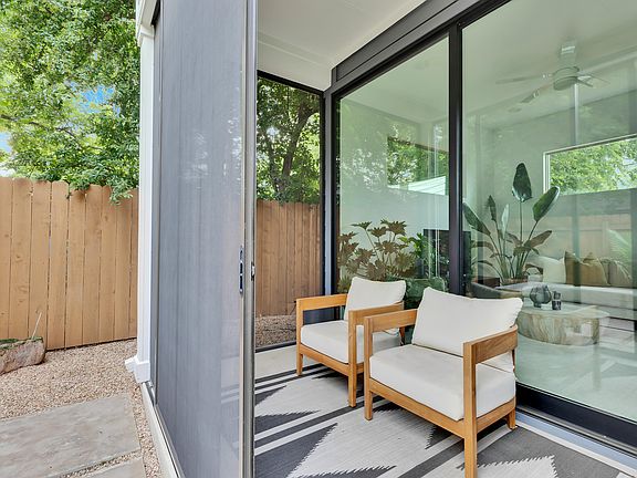 Large windows flood the fully furnished interiors with natural light, highlighting the contemporary design elements throughout. Step outside to the screened in porch, a private oasis where you can soak up the Texas sun or gather around outside for a night cap. The living room gets beautiful natural light, and there is also a half bath downstairs.