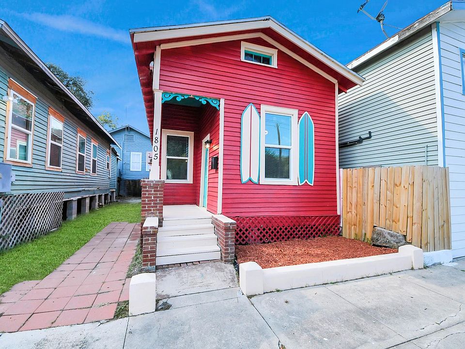 This surf themed cottage is centrally located and within walking distance to Shrimp & Stuff, the beach and the newly opened Local Dogs. Would make a great affordable starter home, second home or even a vacation rental. The high ceilings provide a very open feel. Property includes a side yard and a backyard with covered area. 2 mini split A/C's, stack washer dryer connections, gas stove, refrigerator & new water heater. Seller is a licensed Texas Real Estate Broker.
