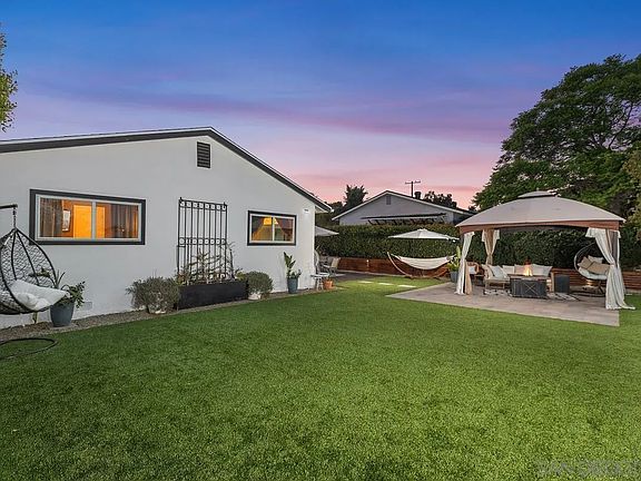 Incredible unobstructed mountain & sunset views from this HUGE, stunning backyard w/room for a pool or ADU, & offering year-round enjoyment with high-end astroturf, stone patio, movable gazebo, firepit, and the ultimate outdoor, natural gas grill complete with side burner & rotisserie. The yard extends past the white picket fence with space for raised garden beds or to install a viewing deck above the slope that serves as a privacy buffer from the home below. Amenities include OWNED SOLAR, Ring Security System, whole house Air Conditioning with Nest Thermostat, and multiple upgrades throughout. The beautiful kitchen has stainless steel appliances, stylish backsplash, tons of storage, a removable breakfast island, and opens up to the bright family room with refurbished hardwood floors & craftsman-style built-ins. The garage has been converted into usable living space or workshop with separate bedroom space, A/C, insulation, drywalled ceiling, tile flooring, a 440 outlet to accommodate an EV charger, and French doors to the backyard.