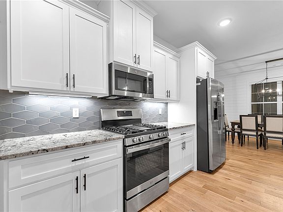 Like new, this home is conveniently located across the street from Pea Ridge High School, with easy access to all of Northwest Arkansas. It features four bedrooms and two full bathrooms, a powder room with many details, and a guest half bathroom, The wide entryway with an open stair railing and built-in bench welcomes guests and leads to a spacious, open living area. The open kitchen with a large island makes entertaining easy. A large pantry, walk-in closets, soft-close cabinets, and a covered patio are just a few of the many extras.
