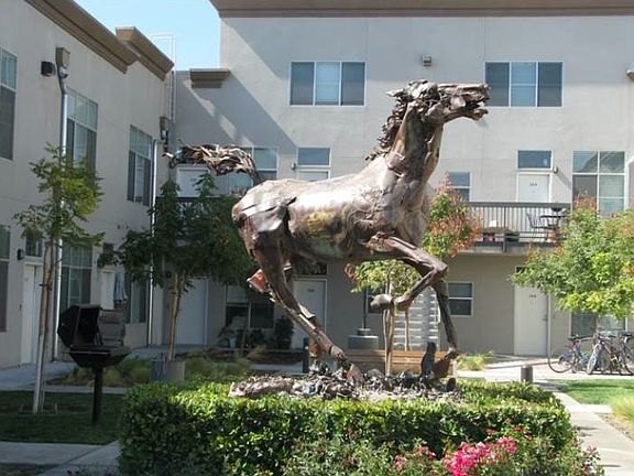 This community offers a private gated scantuary to help you feel at home. The modern architecture is a filled with a unique and urban mix of modern and industrial amenities, all within the heart of the Mural District of downtown Fresno. Only steps away from shopping, local restaurants, art studios and enterainment venues! Community art. We are Pet-Friendly! Professional on-site management and maintenance services.