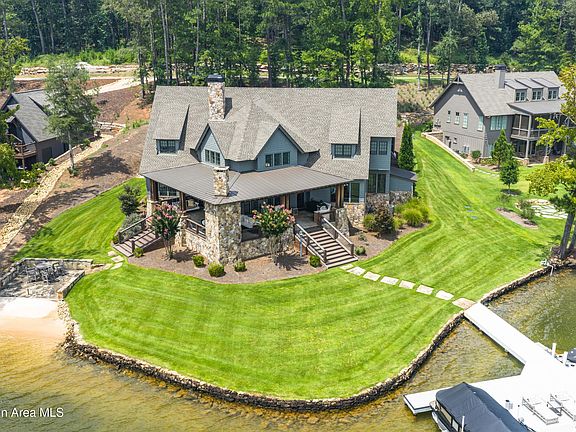 This remarkable nearly new home has a magnificent panoramic view located on a point facing south with open views of both east and west. The interior features lots of open space with high ceiling and wood shiplap walls and ceilings in most rooms. The two car garage is connected to the home via a breezeway to the mudroom. The covered wraparound porch with a fireplace adds to the ambiance of this spacious home.
