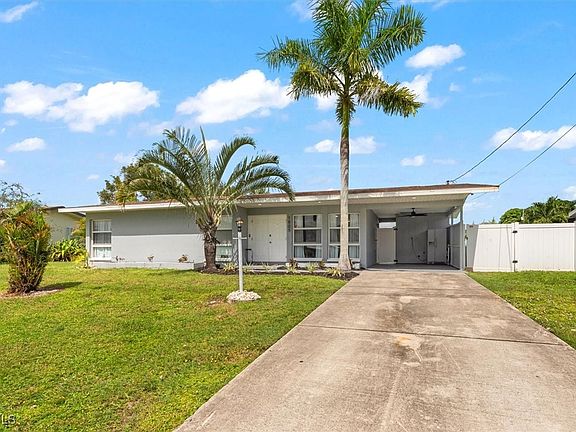 Fully remodeled home in a prime location on Cornwallis Parkway! Hurricane-impact windows on every opening, newer plumbing, updated electrical, and fresh interior/exterior paint. Bathrooms fully gutted and rebuilt with modern finishes. Crown molding throughout. Roof in permitting—will be completed prior to closing. Spacious fenced backyard with fire pit, pop-up pool, and freshly painted carport. No flooding and low-cost flood insurance. Great location close to both bridges and less than 5 minutes to Downtown Cape Coral. Family-friendly street with community events and block parties. Move-in ready with all major updates complete!