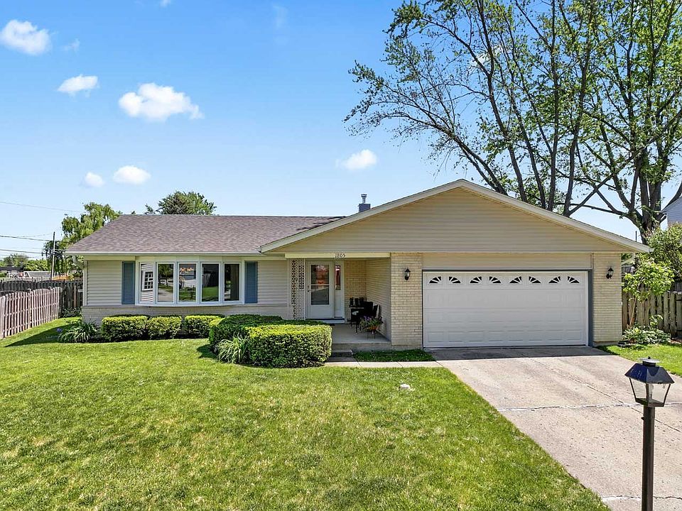 Looking for a 3BR/2.5BA RANCH with 2074sf of living space plus an enormous basement (1100sf) and a new roof? Located in a popular Hersey High School neighborhood, and a couple blocks to Indian Grove Elementary and Burning Bush Park, this home has been beautifully maintained and begins with a large and covered front porch! As you step through the upgraded front door, into the foyer with two big closets, you'll find a well-designed floor plan with a great flow! Formal LR features big front window that lets in tons of natural light and leads to the formal DR with room for a large table! Situated between the DR and FR, the eat-in kitchen offers great counter and cabinet space plus sliders to the concrete patio & a nicely landscaped & fenced backyard! Main level laundry, with a sink and cabinetry, adds to the convenience of this home and there is a WB stone fireplace in the FR! Doors from FR lead to a private back hallway where you will find all BR's, including a nice main BR with double closets & a large ensuite bath w/walk-in shower! Basement is unfinished but is huge, with large crawl space, five new windows and endless possibilities! Freshly painted & new roof (2025) Basement Windows (2024) Water Heater/Sump Pump (2023) Range & Micro Hood (2022) Refrigerator (2020) Furnace & back-up sump pump (2019) A/C (2012) and more! Tree-lined street with sidewalks and great location! Being offered AS-IS.