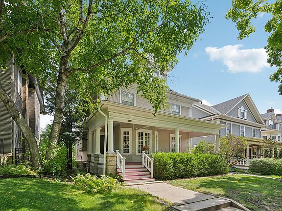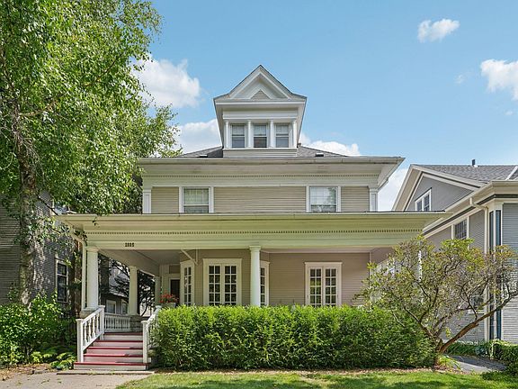 Nestled in the sought-after Lowry Hill neighborhood, this turn-of-the-century residence is a masterclass in architectural detail and enduring character. From the moment you step into the grand foyer, the sweeping staircase and intricate woodwork set the tone for a home that blends historic charm with modern livability. The inviting living room features a stately fireplace flanked by custom built-ins, creating a warm and refined gathering space. A spacious formal dining room, complete with built-in China cabinets, opens seamlessly into a sun-drenched four-season room—perfect for entertaining or quiet morning coffee.