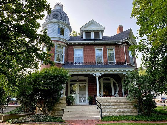 In the heart of Louisiana, MO, this grand Queen Anne Victorian has remarkable late-1800s craftsmanship combined with modern amenities such as an in-ground pool and sauna. A turret spanning 3 stories allows for a spectacular sweep-around view of the neighborhood & yard. Four individually-styled fireplaces provide opportunities for warmth & ambiance. Beveled glass doors/mirrors and stained glass windows radiate their own beauty.  Unique millwork throughout. Walkout basement rec room.