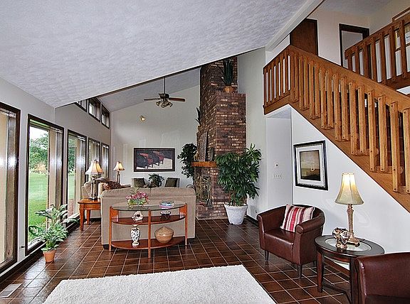 Impeccably maintained, QUALITY custom-built home nestled on stunning 1-acre lot! Open & bright; Amazing kitchen w/ granite counters, stainless steel appliances & hardwood floors opens to large eating area with views of spectacular lot. Vaulted family room w/ soaring brick fireplace and unending windows for natural light! FIRST FLOOR MASTER SUITE w/ walk-in closet & dual sinks. 1st floor laundry w/cabinets and sink. Gorgeous finished WALK-OUT basement boasts family rm, recreation rm, game area, hot tub & wet bar. This passive solar home also saves a significant amount in energy costs! Huge 3-car garage! The lush landscaping and mature trees provide a beautiful setting and picturesque privacy! Enjoy a smart, timeless investment!!