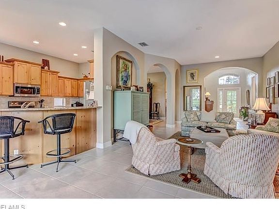 Priced to sell! This fantastic single family villa is not only centrally located in Ivy Pointe, but is also within walking distance to the Pelican Marsh Golf Club. The unsurpassed views of this Arthur Rutenberg home features both lake and golf course views! The two story home has a screened in lanai and a second floor balcony with awning. The property has been extremely well maintained with numerous improvements including appliances, water heater, pool pump, granite counter tops in the kitchen and a newer A/C downstairs. It has been totally painted both inside and outside this year. The spacious storage is unsurpassed! This home is waiting for you!