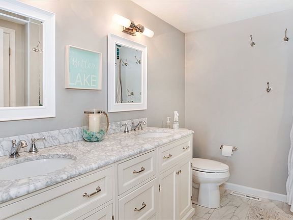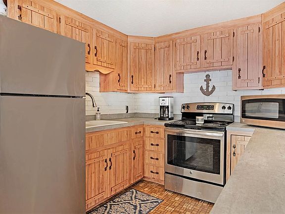 Nicely updated cabin retreat or full time home with views and public access to Sand Lake right across the street! Enjoy year round views from the main living areas right out to Sand Lake. This 2 bedroom 1 bath home features a nice layout, a large mudroom/utility space, an oversized garage, natural gas, and a brick wood burning fireplace. The bathroom has recently been remodeled and boasts a beautifully tiled tub and shower combo. Newer carpet throughout and an updated kitchen with a new counter top and stainless steel appliances. This retreat is waiting for you to move right in!