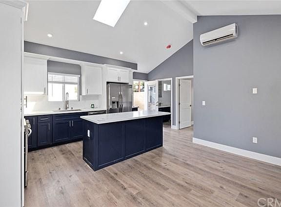 This beautiful, extensively remodeled rear guest house was completed at the end of 2020. This is a rare gem sits in the back of the main property, but offers complete privacy from your neighbors. Beautiful wood-like floors and plenty of natural light flow throughout its airy layout and features vaulted ceilings and skylights to complete that open feel. The open concept kitchen with large island features custom dual toned built-in cabinets, brand new range, under mount sink, dishwasher, and microwave and is open to your spacious living room. Off of your living area you will discover large glass sliding doors that lead to your private outdoor retreat; a perfect place for relaxing and entertaining. Your spacious 14x10 bedroom offers a full-size closet and is prewired for a wall-mounted TV. This home features mini split A/C and heat in the living room and bedroom, vaulted ceilings, designer paint colors, full size washer and dryer, tankless water heater, and a great neighborhood near it all (Belmont Shore, the beach, CSULB, Long Beach Airport, shopping, restaurants, etc). Every thoughtful detail has been carefully considered and was tastefully and strategically included in this home. This is a unicorn you have been searching for. The rent includes all utilities - water, gas, trash & gardener.