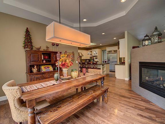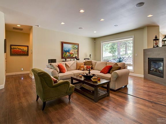 Exquisite 1 lvl Awbrey Butte home w/ a contemporary chef's kitchen that features a Caesar stone island. Plenty of room to entertain outside on the paver patio w/ a soothing water feature & hot tub. Large living room w/ a double sided fireplace to the dining room & separate family room & office w/ custom blt-ins & lots of windows. Master bath has large jetted tub & nice walk-in shower w/ his and hers vanities & walk-in closets. This 4 bedroom 3 bath has all the upgraded amenities you could ask for!