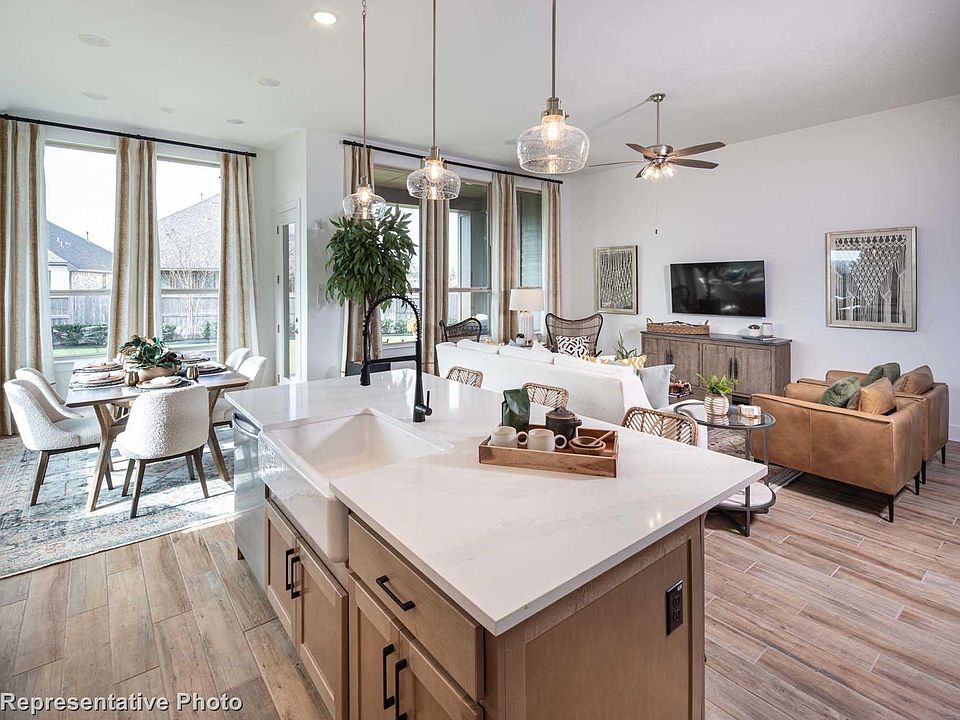 MLS# 20660709 - Built by Highland Homes - Ready Now! ~ Beautiful HIGHLAND HOME in M3 Ranch! This is the Denton plan (same as model)! 3 Bedrooms, entertainment room and a study and 2.5 baths. Very large kitchen open to the family room. Extra tall windows and ceilings throughout. 11 and 12 foot tall ceilings throughout!!