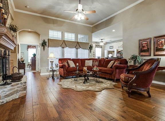 Stunning Custom Sovereign Home has upgrades and updates galore! Granite counters, tile splash, warm neutral tones, custom curtains, crown molding, high ceilings, wood floors and MORE! Large secluded Master has sitting area and spacious adjoining bath with new tiled shower, large garden tub, dual vanities and huge walk in closet. Updated Kitchen has granite counters, rubbed oil bronze faucet and granite sink, lots of counter space. Zoned to Hawk Elem, Crownover Middle and Guyer High schools. close to new retail, restaurants and easy access to I-35.