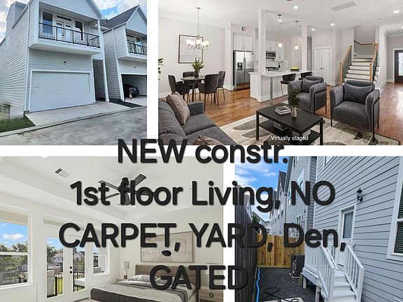 JUST STARTED NEW CONSTRUCTION COMPLETE FEB by established Memorial/Heights Builder, First floor living, 3 bedroom, 2.5(2)-bath home w/2 Living Areas, modern bungalow style design with high end finishes throughout. open concept kitchen is a showpiece, featuring tasteful countertops, white cabinetry,stainless steel sink, attractive hardware, lighting, appointments, stainless steel appliances. BIG Spacious living area, full dining room w/glass door to generous backyard. The 2nd floor has all 3 bedrooms, including a stunning primary suite w/tray ceiling, private balcony, luxurious Soaking tub, dual vanity, & separate glass shower. laundry room & 2 generous secondary bedrms complete this level. The 3rd floor boasts game room w/half bath, ideal for work or as a 2nd living area. Outside, enjoy a private backyard w/sleek black rock or landscaping. A 2 car garage.. Gated community of 38 homes w/ private streets. air bnb not allowed, VIRTUAL TOUR,ASK YOUR AGENT TO CALL ABOUT ANY SPECIALS
