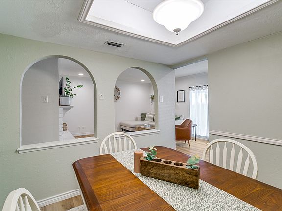 Welcome to this beautifully updated home in the heart of Carrollton offering great curb appeal with mature shade trees and a warm, inviting feel. Inside, you’ll find stacked formals and a spacious family room anchored by a brick wood burning fireplace. The kitchen features granite countertops, stainless steel appliances, an electric range, and a convenient passthrough window to the enormous covered patio, making it perfect for entertaining. The primary suite includes a walk-in closet and an updated ensuite bath with a walk-in shower, while two generously sized secondary bedrooms share a stylishly refreshed bathroom. Notable improvements include a roof replaced in October 2024, complete PVC plumbing in March 2023, foundation work in February 2023, an updated electrical panel in August 2022, luxury vinyl plank flooring and carpet installed in June 2022, and a water heater and dishwasher replaced in 2022. Located in a thriving community known for top-rated schools, parks, and a family-friendly atmosphere, this home offers easy access to major highways, shopping, dining, entertainment, and the charming Downtown Carrollton Square.