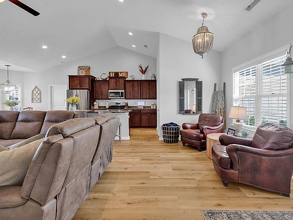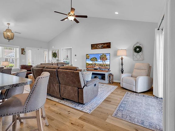 This beautiful 3-bed, 2-bath home offers a bright open layout with plenty of natural light and seamless flow between the kitchen, dining, and living areas—perfect for everyday living and entertaining. The master suite features a tray ceiling, spacious walk-in closet, and double sinks in the private bath. Enjoy natural gas utilities, stainless-steel appliances, upgraded cabinetry, and a fully finished two-car garage with pull-down attic storage. Step outside to a backyard designed for fun and relaxation—complete with a pergola that opens and closes for shade or sun, a turf play area, and a built-in playset for the kids. This home sits on one of the bigger lots in the community. Located just minutes from historic downtown Conway and a short drive to the beaches, this home blends modern comfort with a family-friendly lifestyle. Move-in ready and waiting for you!