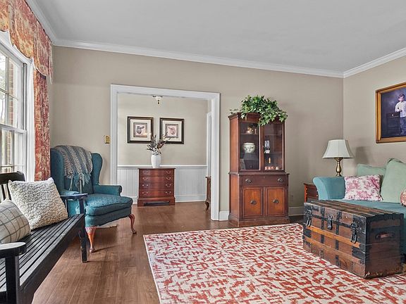 Brick fireplacePlantation blindsExposed beamed ceilingAlley accessGas logs in denBackyard oasisExposed wood beams