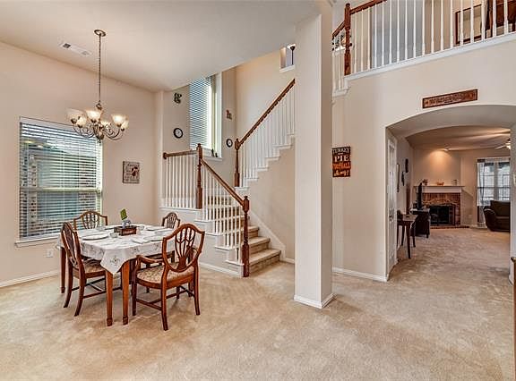 4 bdrm, 2.1 bath w open floor plan boasts charming carriage doors to 3-Car tandem garage! Intimate formal dining is tucked beneath winding staircase. Find corner brick fireplace in spacious family rm. Kitchen, equipped w SS appliances, offers versatile granite peninsula bar providing space for serving guests, meal planning or finishing the latest work project. Split master suite w garden tub & separate shower is fashioned w his & her + separate make-up vanities. 2nd level features 3 bdrms & sizeable game rm. Relax on covered patio w c-fan overlooking grass play area in bkyd w heightened privacy fence. Paloma Creek offers 4 swimming pools, clubhouses, parks, playgrounds & more! SEE VIRTUAL TOUR UNDER MEDIA!