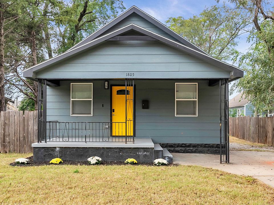 Welcome to 1805 S Topeka Ave, a charming 3-bedroom, 1-bath bungalow in the heart of Wichita. With 1,168 sq. ft. of living space plus an unfinished basement, this home combines character with practical updates. Step inside to find luxury vinyl flooring that flows throughout the home, creating a warm and low-maintenance living environment. The spacious living and dining areas offer flexibility for everyday living or entertaining guests. The kitchen is equipped with a dishwasher, refrigerator, and oven that will remain with the property, making it move-in ready for the next owner. A separate laundry room on the main floor adds convenience, while the unfinished basement provides ample storage space and provides a shelter to storms. Outside, enjoy a covered front porch that’s perfect for morning coffee or evenings with friends, as well as a fully fenced backyard with room for pets, play, or a garden. The property also includes a 1-car detached garage, offering secure parking or extra storage. Situated in a central location, this home provides easy access to major roads, downtown Wichita, and nearby shopping, dining, and entertainment options. Whether you’re a first-time buyer, downsizing, or looking for an investment property, this bungalow offers both charm and opportunity. Don’t miss the chance to make this inviting home your own—schedule a showing today!