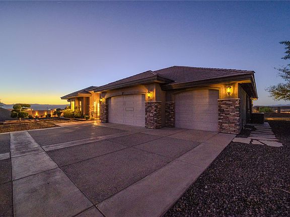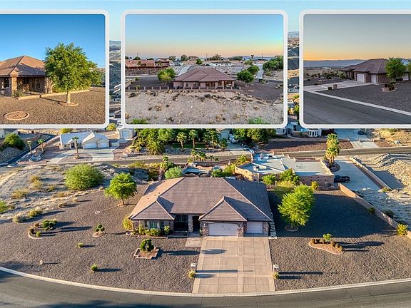 Nestled at 1805 Stovall St, Bullhead City, Arizona, this luxurious home located in the sought after area of Clearwater Hills, offers an amazing design in this custom home. The living room features large picture windows to take in the stunning views, a fireplace, perfect for cozy evenings, along with built-in shelves that provide ample storage and display space; the tray ceilings add an architectural touch. The kitchen is a culinary dream, boasting a large kitchen island and a convenient kitchen peninsula, both adorned with granite countertops. The stovetop and backsplash enhance the cooking experience, while the kitchen bar and crown molding add sophisticated touches. The primary bedroom provides a private retreat, complete with a second fireplace and an ensuite bathroom for ultimate comfort and convenience. The bathroom features a jetted tub, providing a spa-like experience, along with a tiled walk-in shower. This single-family residence offers a patio, a built-in outdoor BBQ area, and a porch, all perfect for enjoying the beautiful Arizona sunsets and mountain views. The large 3 car boat deep garage, provides plenty of room for your river/ sand toys. The home sits on a large .86 acre lot that has plenty of room to build your dream pool and/or an RV garage, just the way you want it. This home also includes an open floor plan with 10' ceilings and walk-in closets. The oversized office with custom cherry bookcases and desk give you ample room for your workspace. With three bedrooms, an office, and three bathrooms spread across 3286 square feet of living area, this 2004 quality custom built property offers a lifestyle of unparalleled comfort and sophistication.
