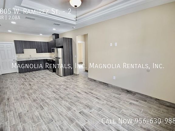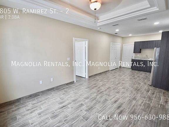 Welcome to 1805 Ramirez, a brand new 3-bedroom, 2-bathroom apartment in Mission, TX. This modern unit features an open floor plan with vaulted ceilings, a spacious living room, and a walk-in closet in the master bedroom. The kitchen is equipped with stainless steel appliances, including a stove/oven, refrigerator, and microwave, as well as modern fixtures. Stay comfortable year-round with central AC and ceiling fans throughout. Enjoy the convenience of covered parking and the luxury of a back porch for outdoor relaxation. This pet-friendly apartment comes with breed restrictions and includes a washer and dryer for added convenience. Tenant pays all utilities, and lawncare is included. With a 12-month lease, 24/7 maintenance support, and a strict no smoking policy, 1805 Ramirez offers the perfect blend of comfort and convenience for your next home.