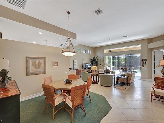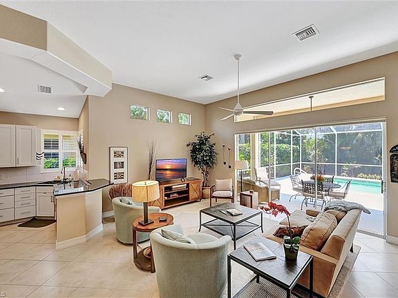 Step Into this updated 3-bedroom 2 bath Villa home featuring a Southern exposure pool with an expansive, screened lanai ... perfect for relaxing or entertaining. Inside, you'll find a bright and airy great room with high ceilings creating an open space and inviting living area. This home boasts elegant neutral large tile flooring, newer white cabinetry paired with sleek black countertops and stainless appliances in a modern spacious kitchen. The Generous Master Suite includes a large walk-in closet and a beautifully renovated bathroom with plenty of natural light. The private Guest room and 3rd room used now as an office/guest room share an adjoining updated full bathroom. Located in a Bundled golf Country Club Community, where residents enjoy access to an 18-hole challenging golf course, tennis courts, a modern attended fitness center, and a brand-new casual dining Bistro and resort-style pool. The stunning Clubhouse is the heart of the community, hosting numerous activities and special events year -round. This move-in ready home combines style, comfort and Florida living at its best. Located only 3 miles to the beautiful white sand Naples Beaches and only 15 minutes to Olde Naples upscale shopping and dining. Stonebridge has it all!