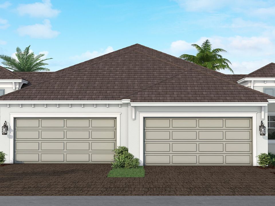 The Tidewater B a two-bedroom, two-bath twin villa home designed by Neal Communities features a spacious layout with an open living area. The home includes an open great room, dining area and beautifully-equipped kitchen with island for enjoying five-star meals. A den offers the perfect space for a home office, while an extended and covered lanai at the back of the home provides a lovely environment for enjoying the outdoors. The master suite bedroom includes door to the lanai. The suite also features two closets and a bath with dual sink vanities, walk-in shower and private water closet. A walk-in closet and proximity to a full bath makes the second bedroom a great guest room.