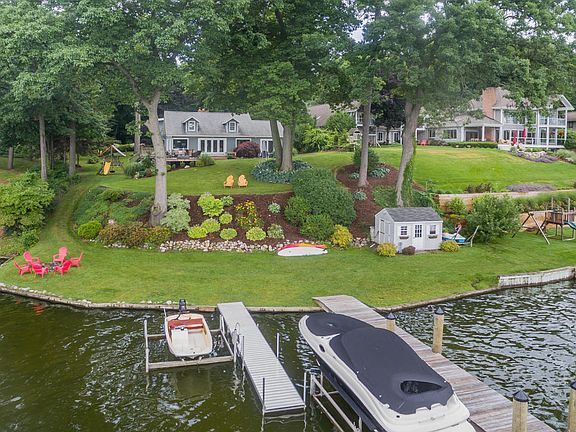 Panoramic views await you in this beautifully updated home on Spring Lake with 144 feet of frontage. Enjoy the breezes from the walk out deck in the summer months and the views from the cozy family room with fireplace during the winter months.. The master spa like retreat is sure to be enjoyed all year round. For the boater, the 80 foot dock, with 20 foot water depth is sure to please. The kitchen with eat in area and built ins has been recently updated with timeless appeal. Plenty ofroom for entertaining and gathering with the spacious family room complete with a lovely and functional wet bar