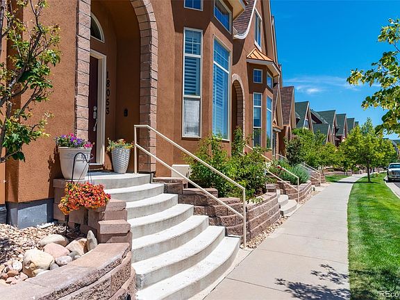 Situated in the heart of Anthology, this beautifully updated townhome is located on a quiet interior street and filled with many wonderful upgrades you are sure to appreciate. Upon entering, you will be in awe of the floor to ceiling windows, high ceilings and the abundance of natural light. The Kitchen features an island with bar seating, upgraded 42" cabinets, granite countertops, ample counter and cabinet space, backsplash and stainless steel appliances (refrigerator excluded). Adjacent to the Kitchen is the open plan Dining and Family Room with access to the balcony. Upstairs you will find the Primary Bedroom Suite complete with a luxurious 5-piece Bathroom and a custom designed walk-in closet. Two additional Bedrooms, remodeled full Bathroom and Laundry Room finish out the upstairs living space. Recent home improvements include: Primary Bathroom + Full Bathroom / Dishwasher (2021), Larger AC Unit / Interior Paint / Carpet (2020), Living Room Flooring / Shutters (2019). Oversized 2-car attached garage includes a storage closet and additional storage space. Enjoy the neighborhood amenities with access to the pool and clubhouse. Conveniently located near parks, shopping, restaurants and schools with easy access to Parker Road, 1-25 and E-470. This charming home awaits you!
