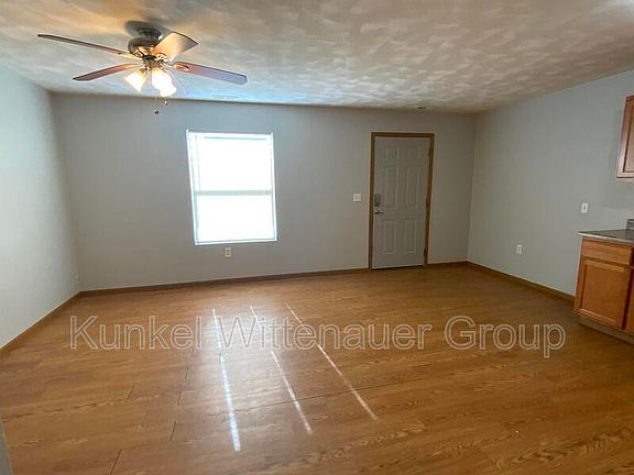 2 Bedroom, 1 Bathroom Ground level Apartment. Open living room, dining area, and kitchen with wood laminate floors. Kitchen appliances included a refrigerator and an electric stove. Both bedrooms have ceiling fans and carpet. Full bathroom with wood laminate floors. Lawn care, snow removal and trash is included. Pets negotiable $300 pet deposit, refundable, $30 per month, pets 25 pounds or less, limit one pet.
