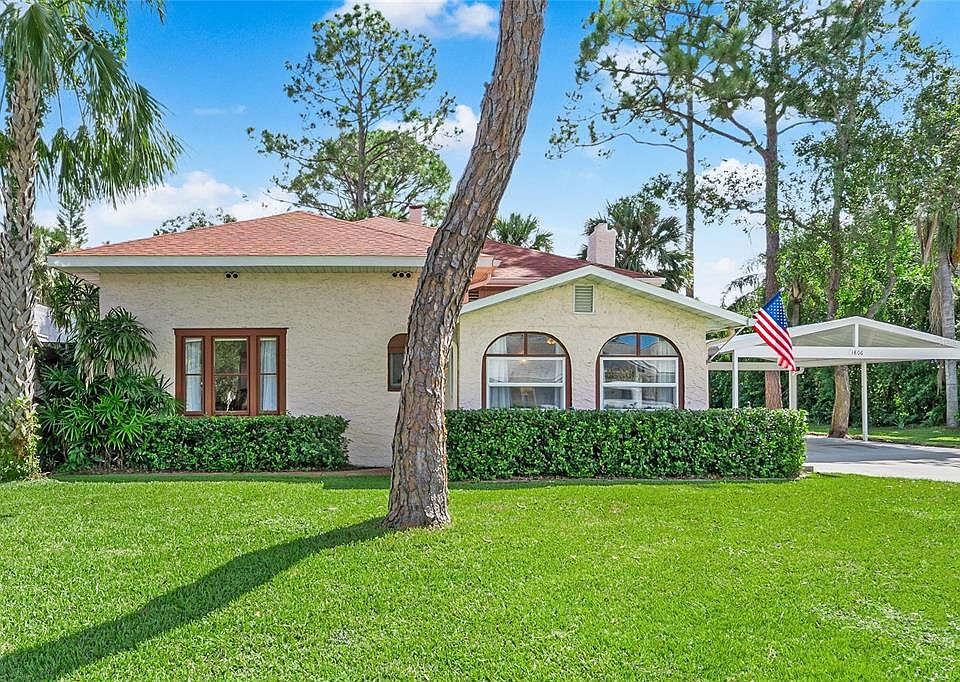 Mediterranean Revival residence blends historic architecture with modern updates, creating a rare offering in the heart of Winter Haven. Just across from Lake Cannon and near Lake Mirror on the scenic Winter Haven Chain of Lakes, this home embraces the character of a Spanish bungalow while offering the comfort and livability of thoughtful renovation. The neighborhood itself is steeped in charm, with beautifully maintained older homes, tree-lined streets, and refreshing lake breezes that make evening strolls especially enjoyable as you take in the architecture and picturesque water views. Curb appeal is undeniable with a textured stucco exterior, arched windows, and an oversized double lot shaded by mature trees and old Florida palms. A covered two-car carport, new concrete driveway, and professional landscaping with St. Augustine sod and irrigation set the tone for what awaits inside. Upon entry, the formal living room greets you with Saltillo tile floors, a beadboard ceiling, and arched windows framing the lush front yard. Nearby, the family room provides a warm retreat with a coved ceiling, original hardwood floors, and a gas-burning brick fireplace that invites both quiet evenings and lively gatherings. Tucked discreetly off this space, a computer nook offers a dedicated corner for work or study. The formal dining room is rich with historic detail, showcasing softly curved ceilings, arched transitions, and corner built-in cabinets with glass doors. In the kitchen, past and present meet seamlessly with wood cabinetry, soft-close drawers, granite countertops, stainless steel appliances, and a walk-in pantry with laundry connections. Three bedrooms and two baths complete the interior, including a primary suite with French doors that open directly onto the patio, extending the living space outdoors. Both bathrooms have been tastefully remodeled with marble, porcelain, and ceramic tile, new vanities, and updated fixtures, maintaining period charm while providing modern comfort. The outdoor areas are just as appealing, with a rear patio overlooking a private backyard ideal for entertaining, gardening or relaxing. For hobbies or storage, a detached 18x19 workshop with roll-up door, electricity, and concrete slab is well suited to woodworking, automotive projects, or boat storage. Extensive updating gives peace of mind: a new roof with 30-year shingles, updated plumbing and electrical systems, new HVAC units with ductwork, refinished hardwood floors, replastered and retextured walls, remodeled kitchen and baths, and fresh interior and exterior paint. Additional improvements include Tiffany-style fans and period lighting, and a newly installed well-fed sprinkler system. With city water and city sewer, the home is as functional as it is beautiful. Conveniently located minutes from downtown Winter Haven, shopping, dining, schools and medical facilities, and with easy access to the Polk Parkway for commutes to Lakeland, Tampa, or Orlando, the property also offers quick access to boat ramps on the Chain of Lakes for fishing, boating, and waterfront dining. For those who appreciate historic homes, Spanish bungalows, and Mediterranean Revival architecture, this home is a rare opportunity to own a lovingly restored residence where character and modern comfort come together seamlessly.